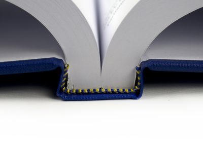Hard Binding in Blue with Headbands Spine close up