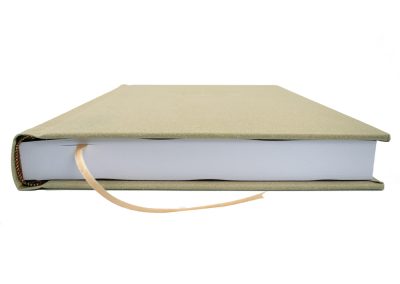 Hard Binding in Biege Recycled Leather with Gold foiling to Front and Spine with Headbands and Register Ribbon 3