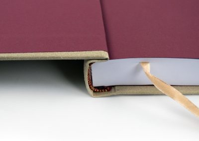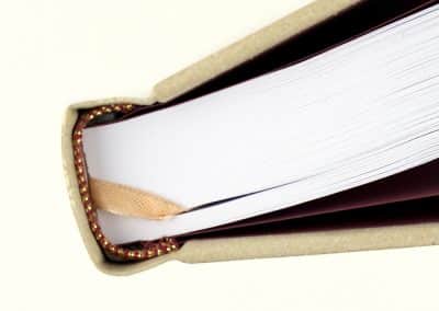 Hard Bind Spine close up with Headbands and Register Ribbon