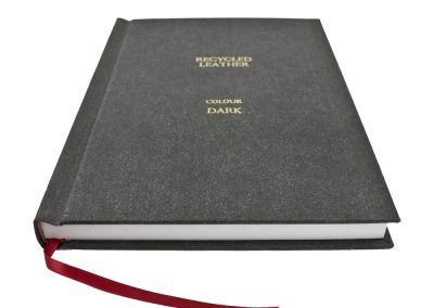 Hard Binding in Dark Recycled Leather with Gold foiling to Front and Spine with Headbands and Register Ribbon 3