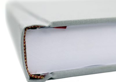 Hard Binding in Light Grey Brillianta with Silver Foiling to Front and Spine with Red and Gold Headbands 3